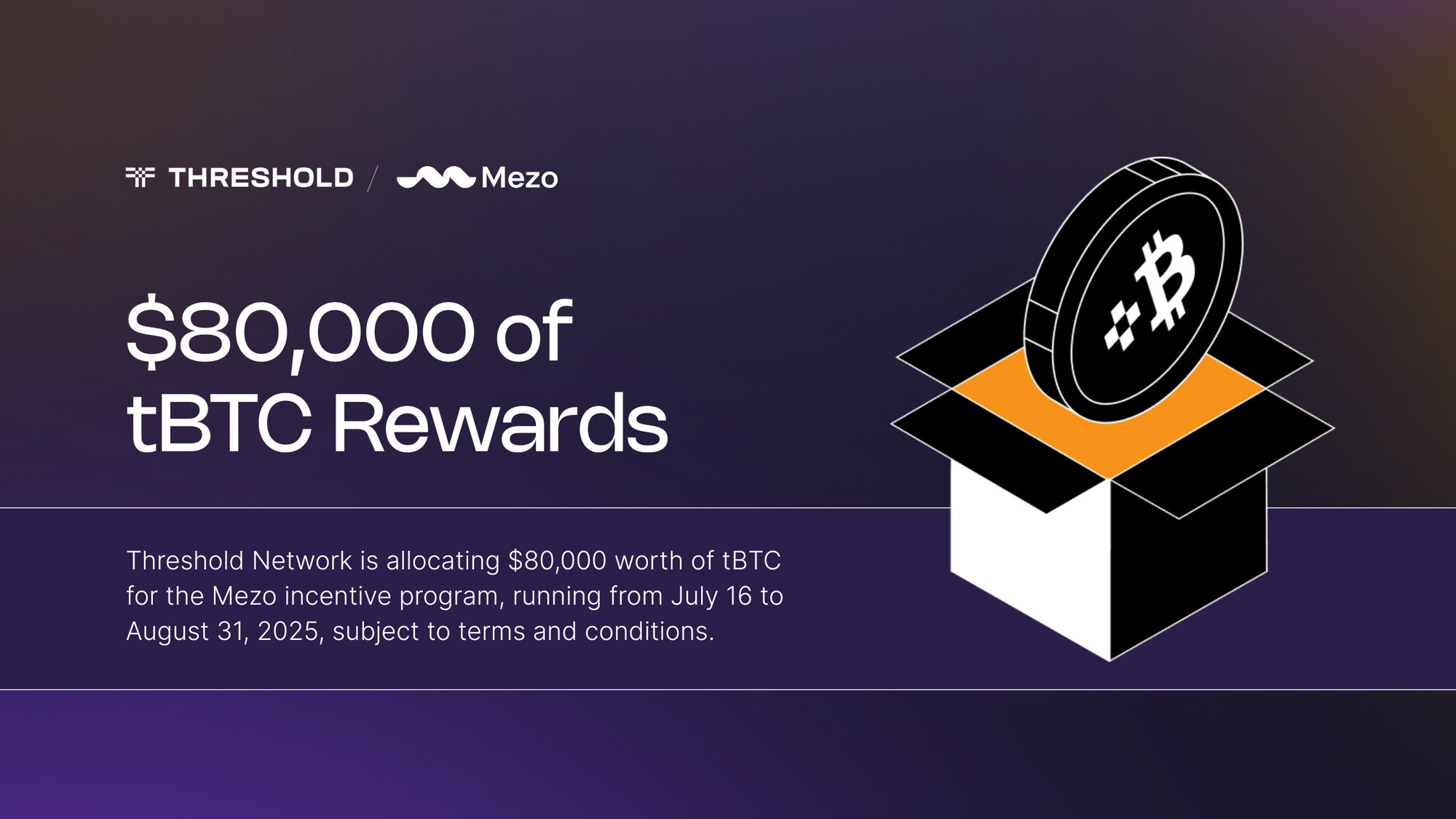 Threshold Network is allocating $80,000 worth of tBTC to eligible participants in the Mezo incentive program, split into two distinct pools: