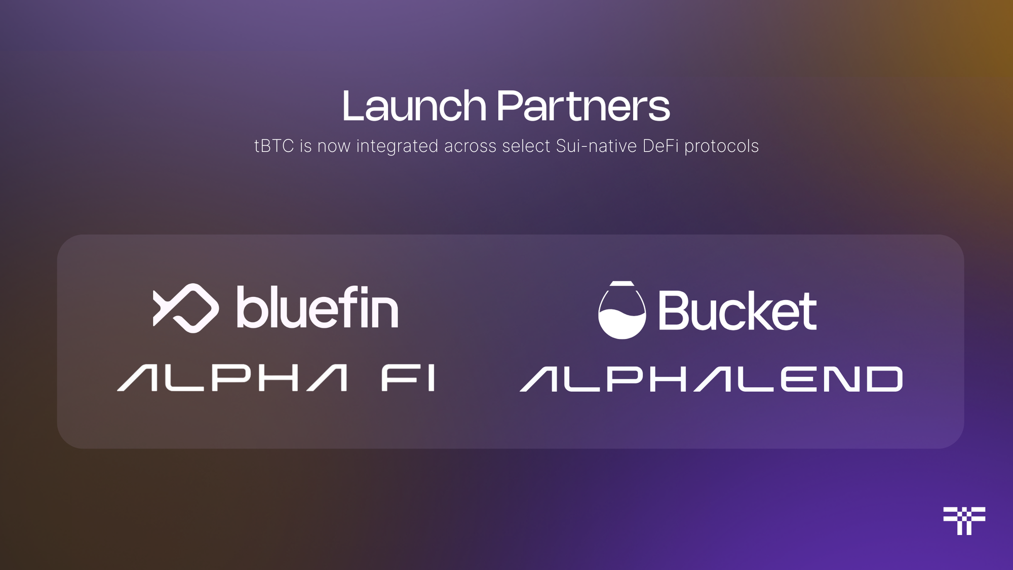 tBTC will bring Bitcoin's multi-trillion-dollar liquidity to a deeply integrated DeFi network through its multi-layered architecture. Unlike centralized wrapped tokens that compromise Bitcoin's core principles, tBTC works for everyone. Institutions achieve compliance, while Bitcoin maximalists maintain their sovereignty. This integration will activate Bitcoin's utility across multiple Sui-native DeFi protocols, including Bluefin, Bucket, AlphaLend, and AlphaFi, while providing users with a variety of ways to utilize their Bitcoin.