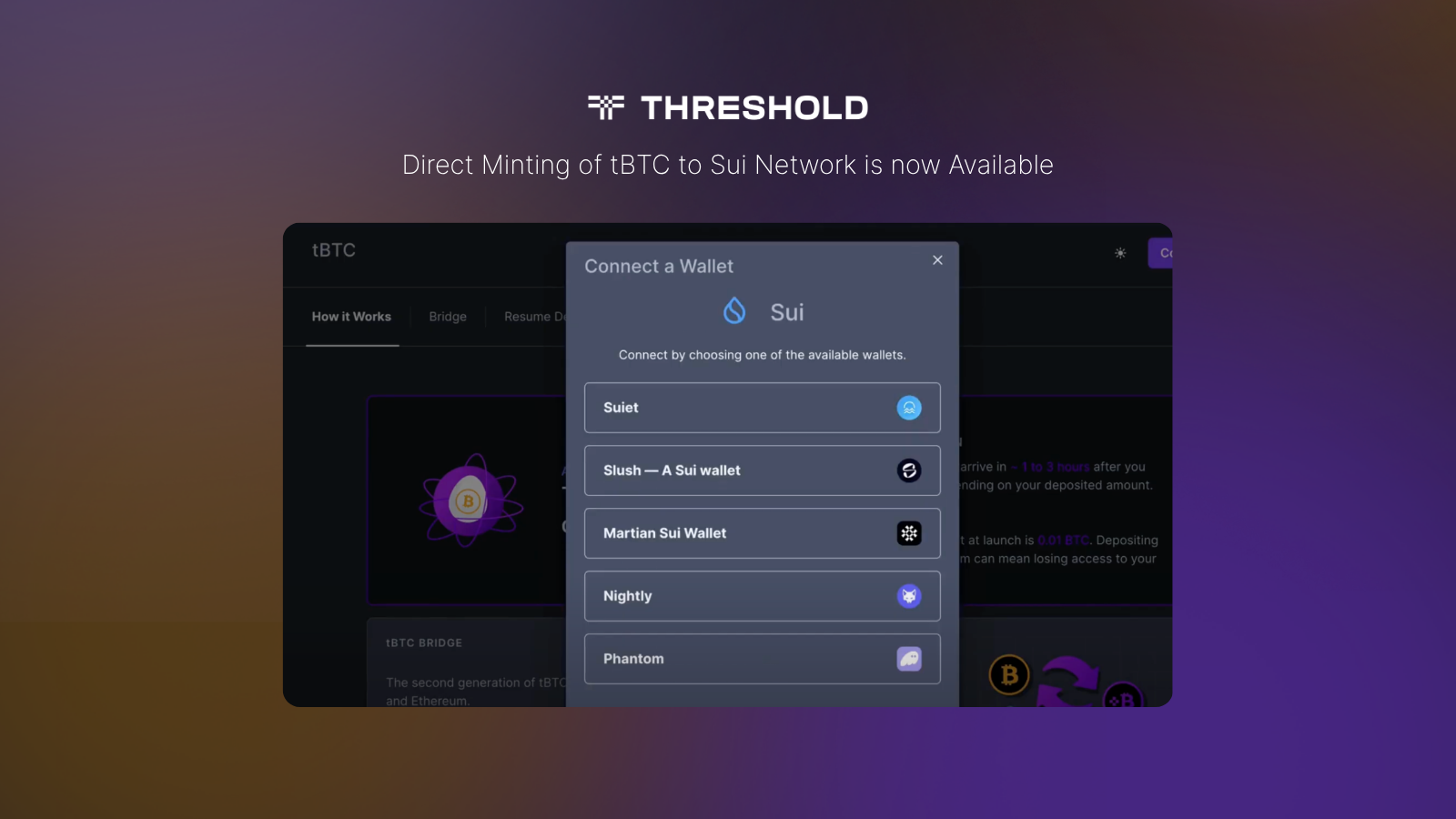 - Direct Minting of tBTC on Sui via https://dashboard.threshold.network