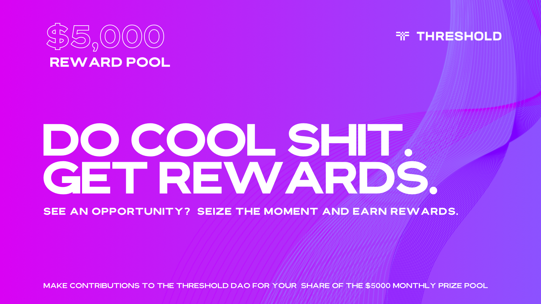 Have you ever felt that surge of inspiration, seeing an opportunity and wanting to act upon it immediately? Now, you can seize that moment, make invaluable contributions to the Threshold DAO, and earn rewards in return. Let's dive deeper!