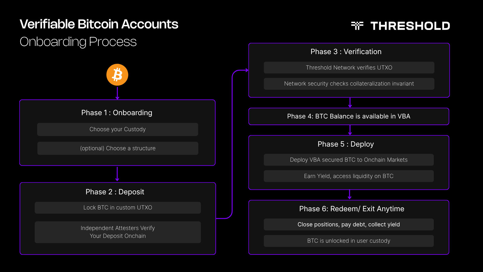 Verifiable Bitcoin Accounts (VBA) is a new framework for institutional Bitcoin deployment. Built on the same signer infrastructure that has operated with Bitcoin for 6 years, has processed over $5 billion in cumulative volume, and has sustained zero losses: Threshold Network.